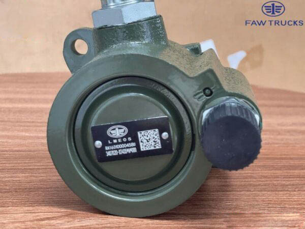 Trong hệ thống lái của xe đầu kéo FAW 460HP, bơm trợ lực lái là bộ phận đóng vai trò trung tâm giúp người lái điều khiển xe dễ dàng, giảm đáng kể lực tác động lên vô lăng. Đây là chi tiết quan trọng trong hệ thống thủy lực trợ lực lái, đảm bảo độ ổn định, chính xác và an toàn khi xe di chuyển.