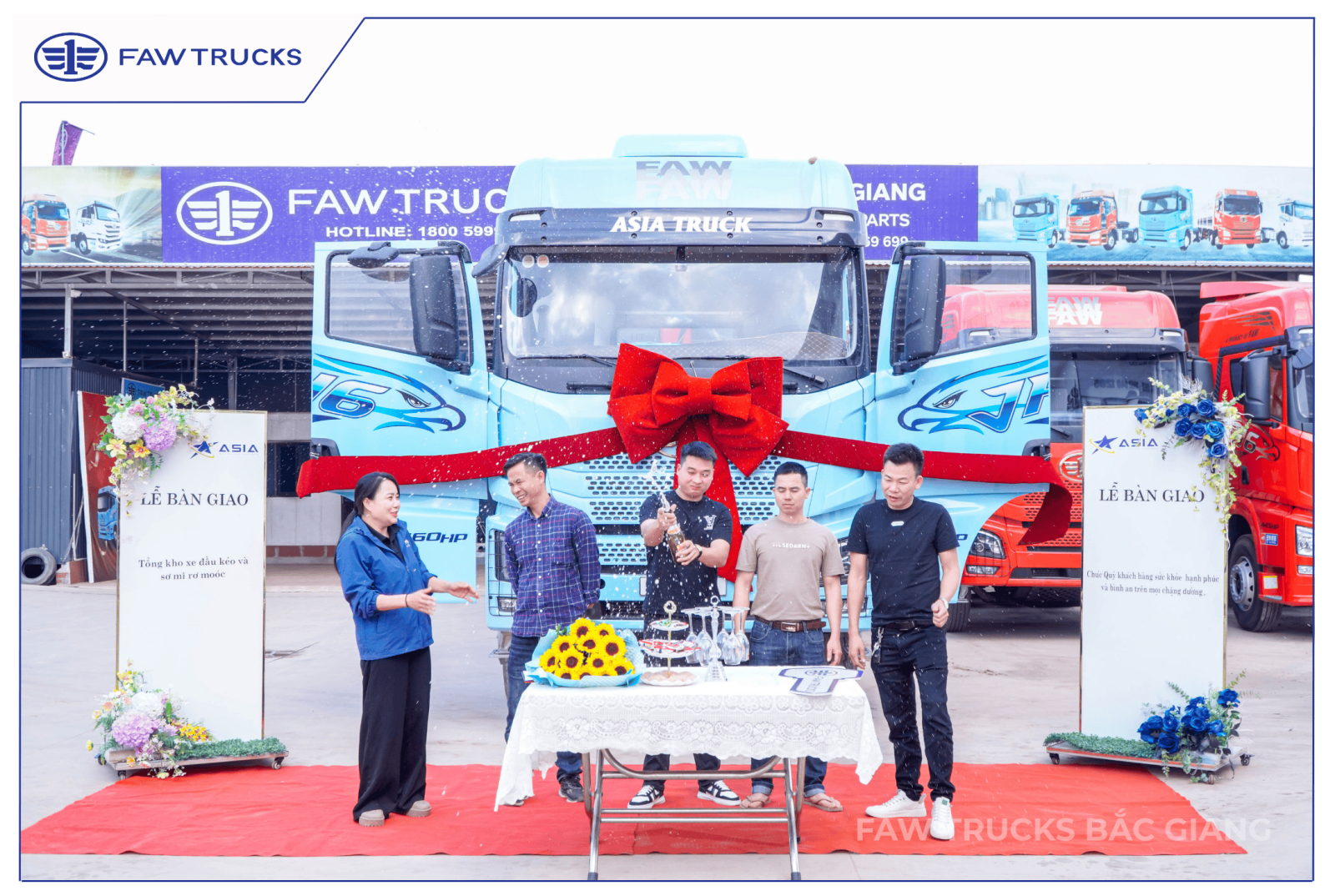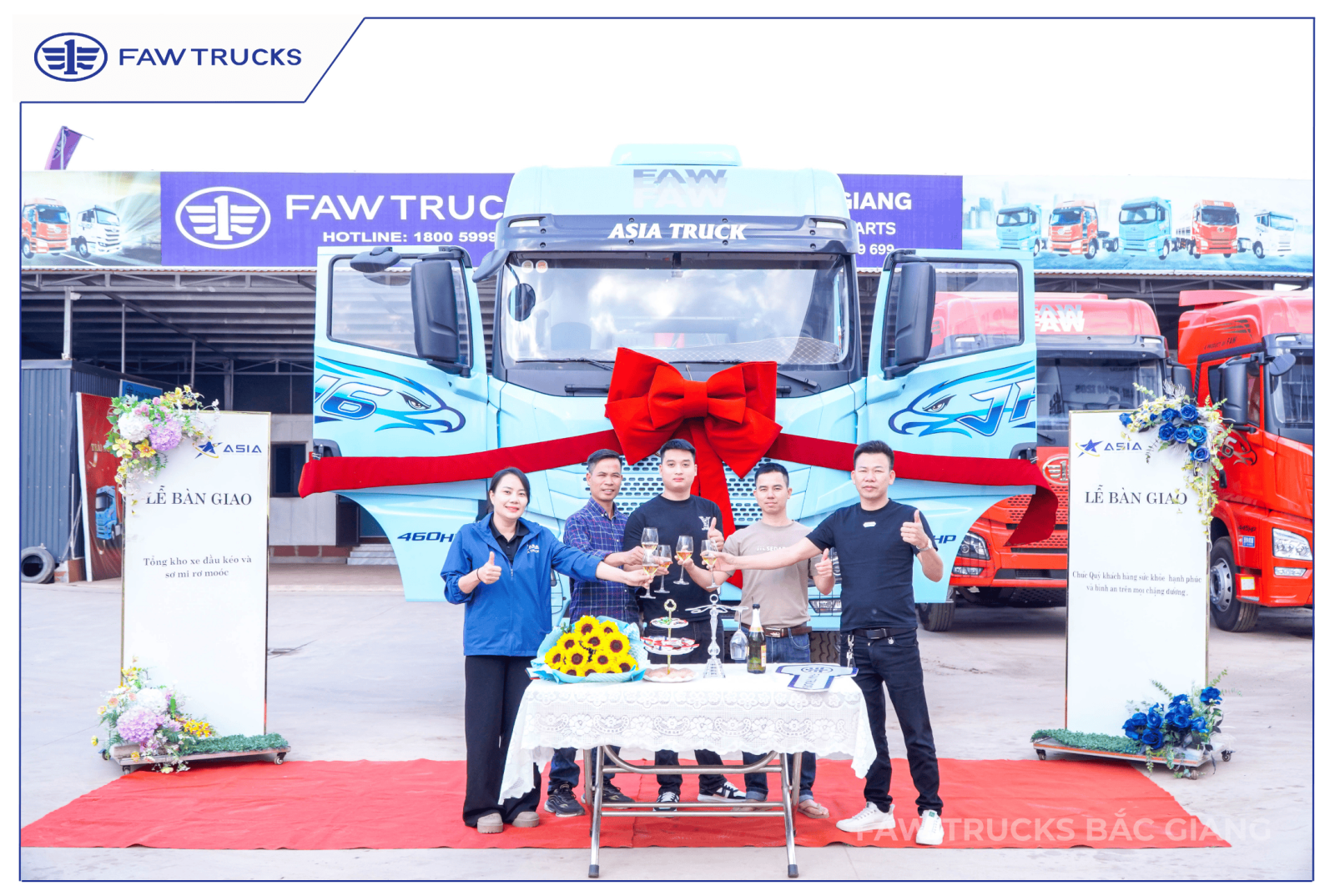 FAW Trucks Bắc Giang hân hạnh bàn giao xe đầu kéo FAW đến Quý khách hàng, đánh dấu khởi đầu thuận lợi cho những chuyến hàng suôn sẻ, làm ăn phát đạt